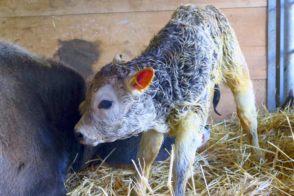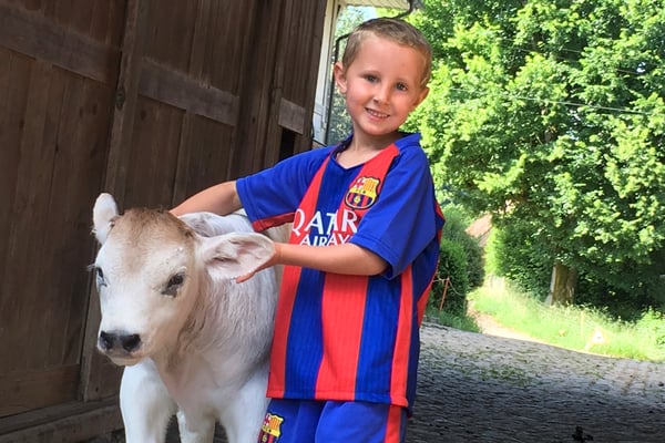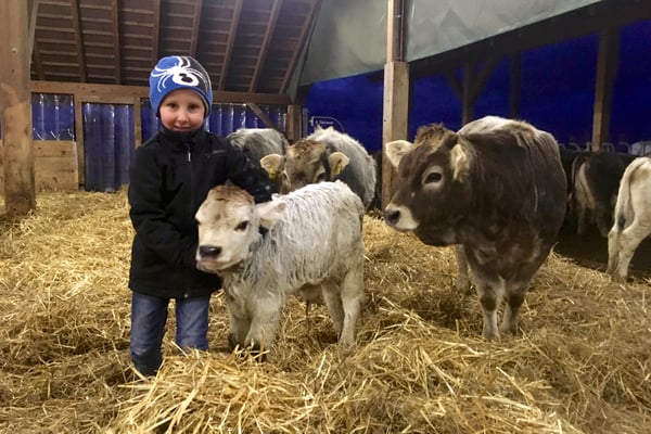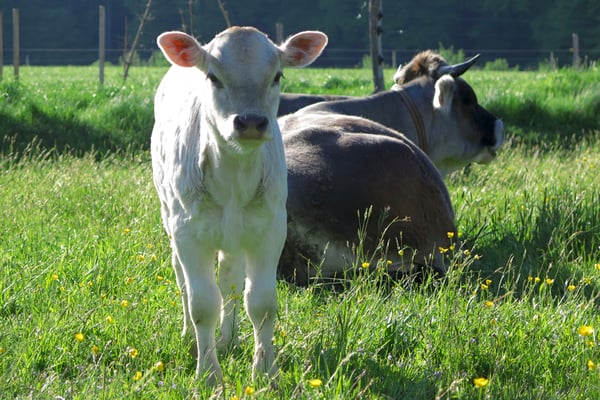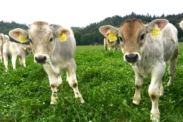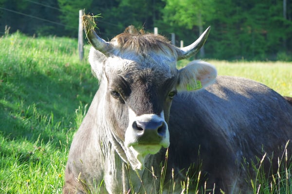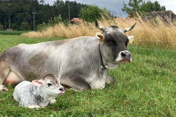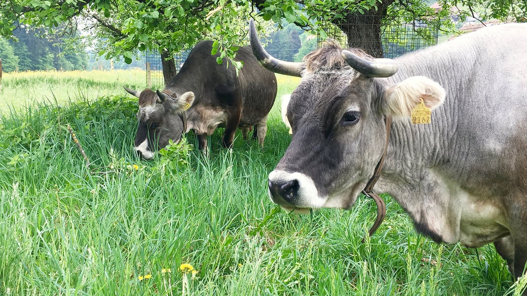 Zu unserer Mutterkuh-Herde zählen 14 Kühe mit ihren Kälbern, ein Rind für die Nachzucht und der Muni Sebastian. Die Tiere tragen Hörner und bekommen genug Zeit ohne Kraftfutter zu wachsen. Das Jungrindfleisch verkaufen wir einmal im Monat und liefern es direkt zu euch nach Hause. Zudem metzgen wir eigene und zugekaufte Bio-Grauviehkühe und lassen bei unserem Metzger verschiedene Trockenwürste, Trockenfleisch, Hamburger, Grillschnecken und Bratwürste machen.