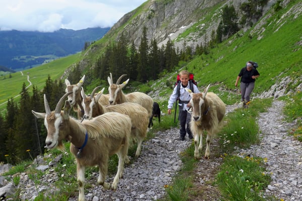 Im grosszügigen Laufstall lebt eine Herde liebenswerter Ziegen. Unsere Toggenburgerziegen und einige Braune Gebirgsziegen können sich hier ausruhen, fressen, einander necken oder mit ihrer Freundin schmusen. Gleich nebenan ist auch das Zuhause von unserem Rätischen Grauvieh. Hier leben die Mutterkühe mit ihren Kälbern zusammen. Auch unser Stier Sebastian ist immer mit dabei. Und irgendwo im Grünen steht unser mobiler Hühnerstall und beherbergt rund fünfzig Legehennen und einen Hahn.